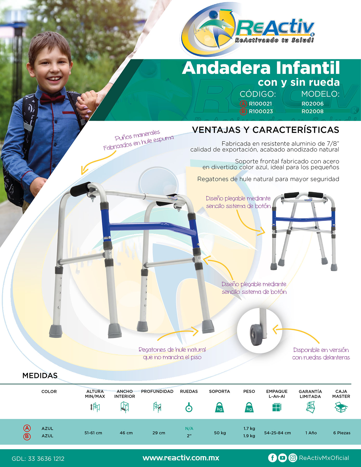 Andadera de Aluminio Infantil Plegable - Azul