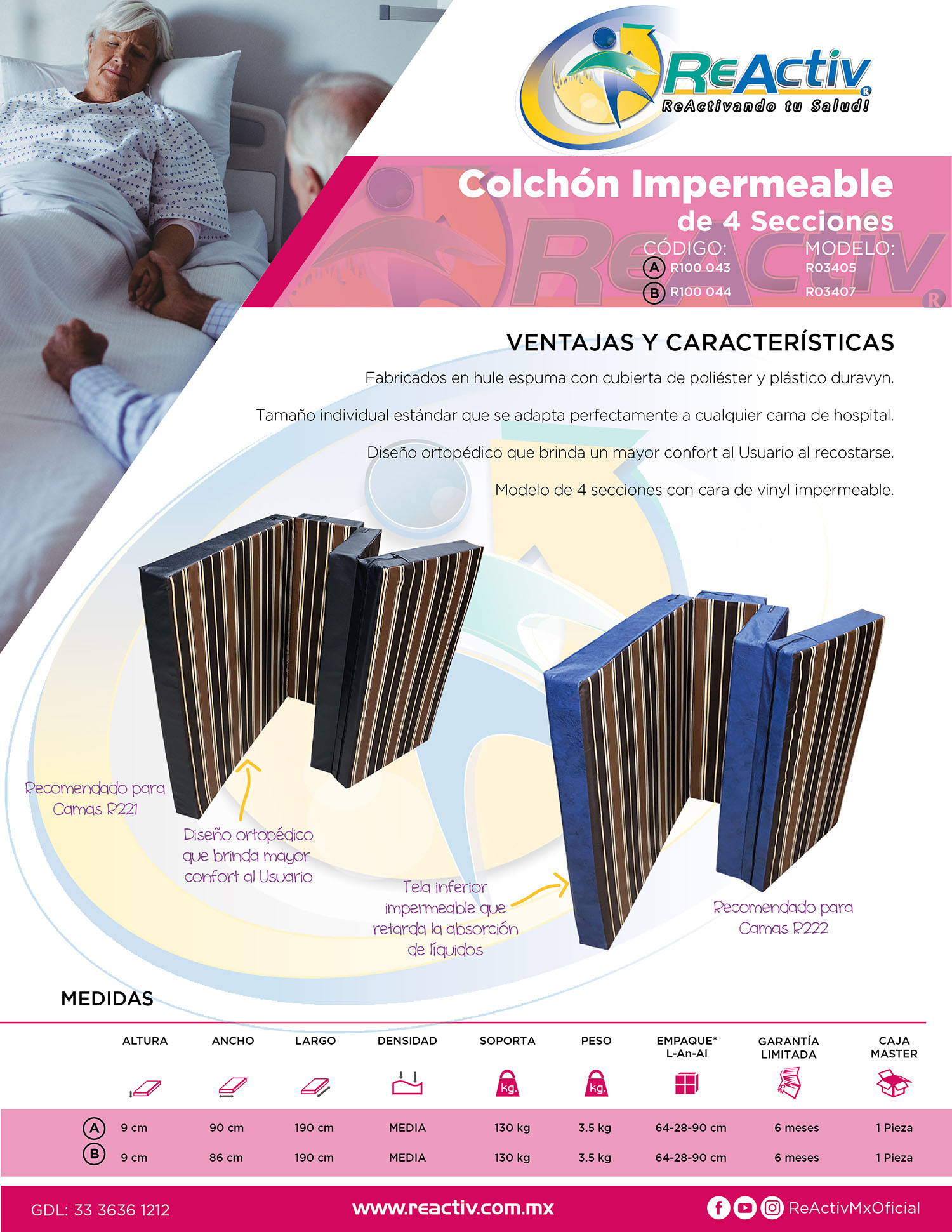 Colchón de 4 Secciones Impermeable de 190 x 90 x 9cm - Densidad 17