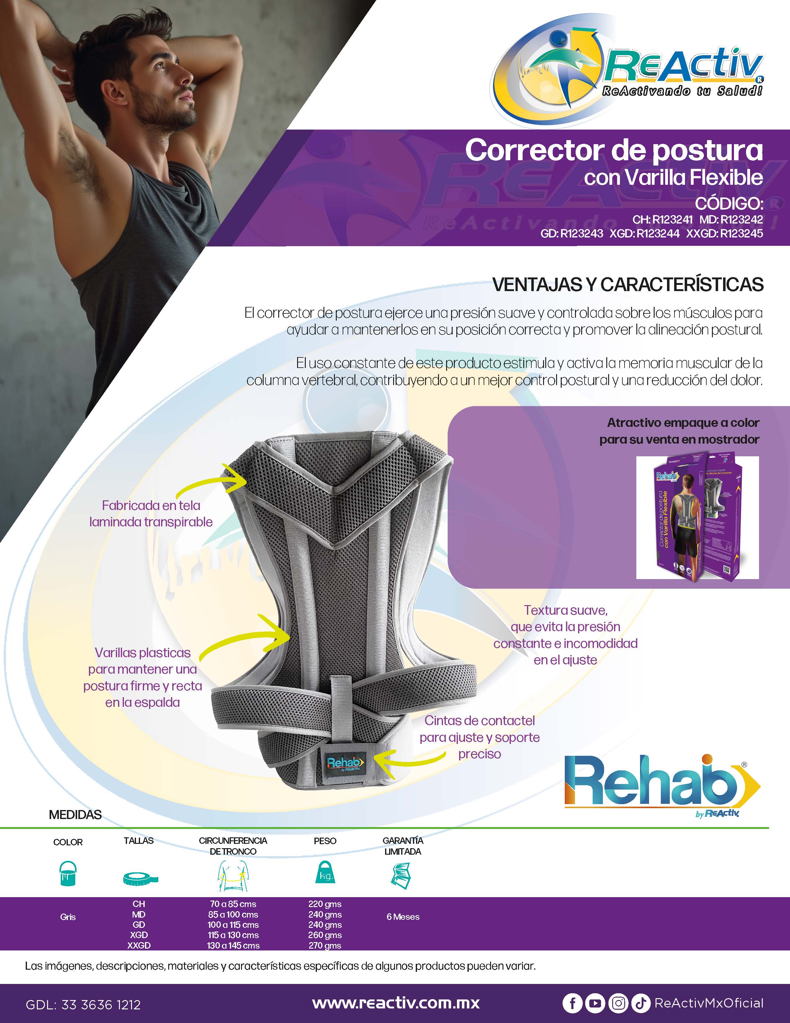 Corrector de Postura para Espalda con Varilla Flexible y Broche de Contactel Rehab, Ch