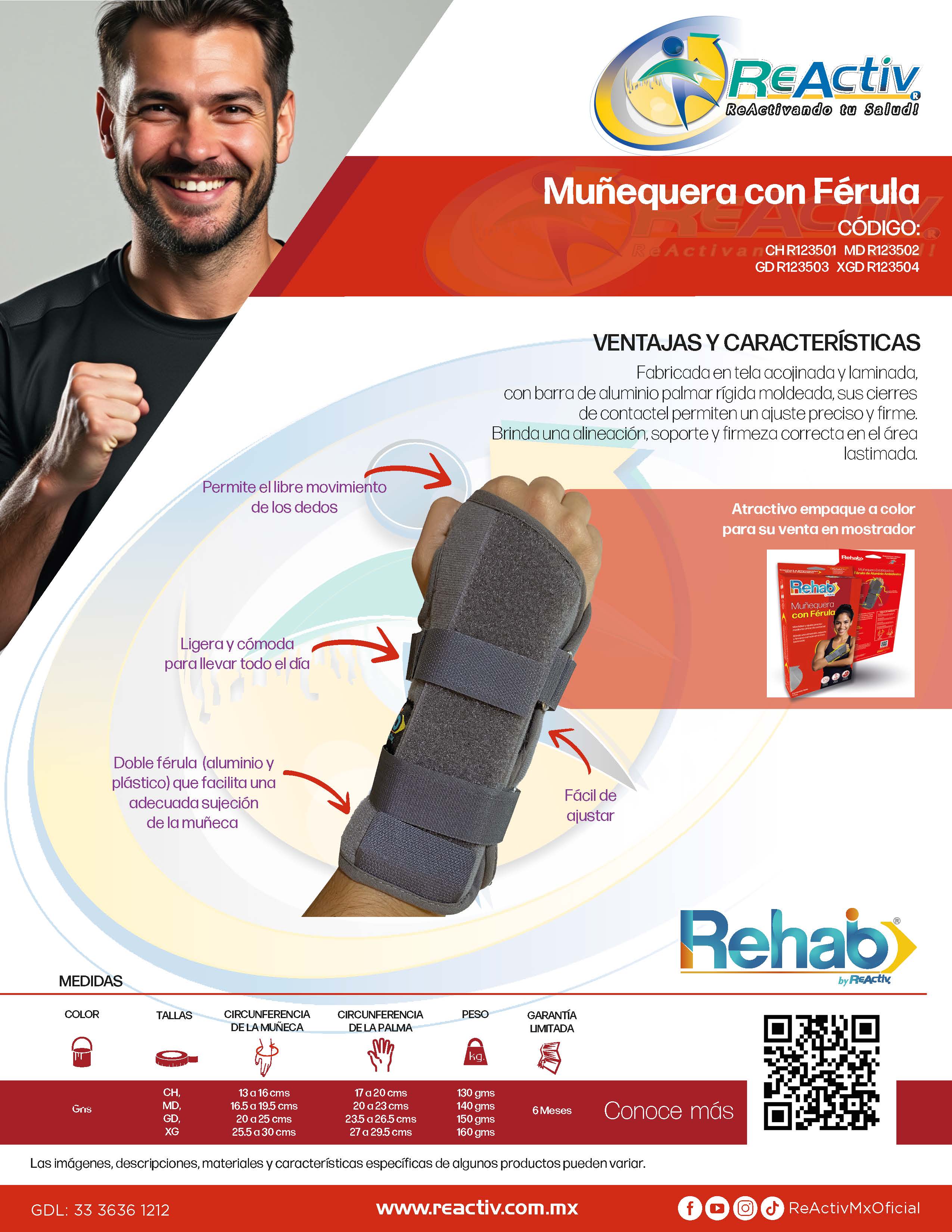 Muñequera Estabilizadora con Férula de Aluminio Ambidiestra para Síndrome de Túnel Carpiano Rehab, Ch