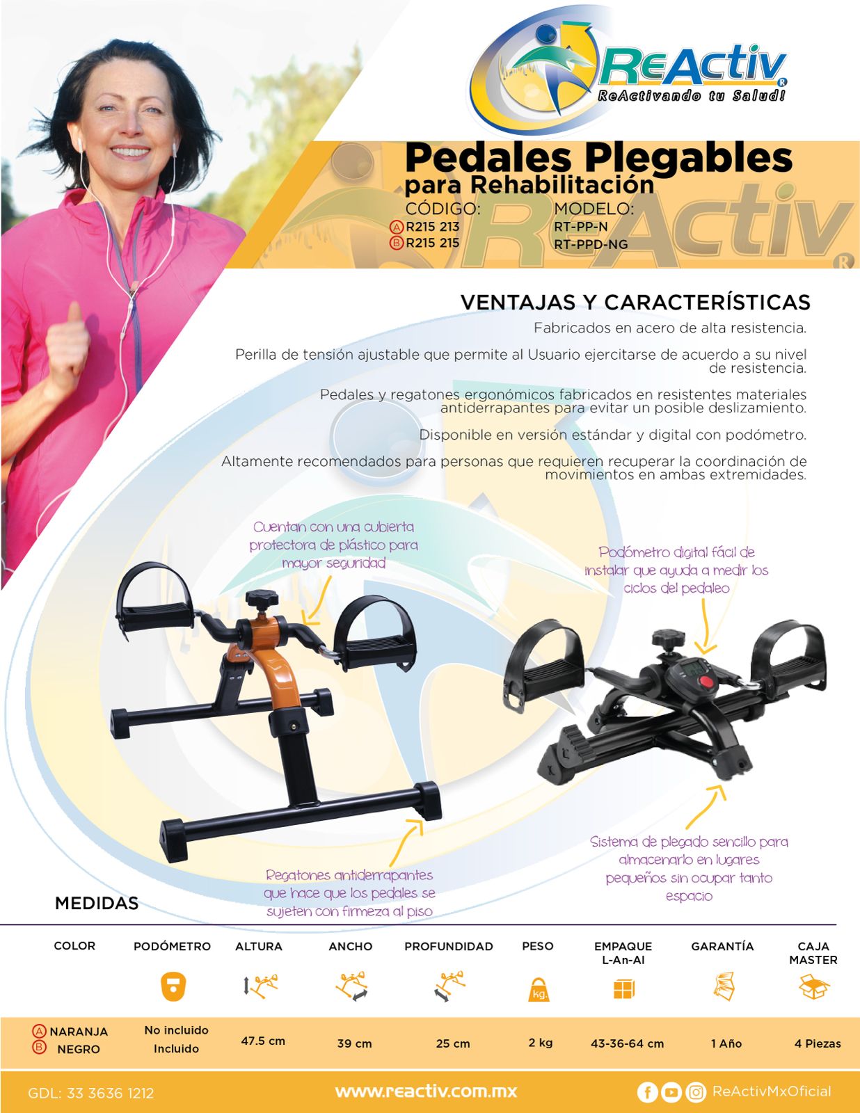 Pedales ReActiv Plegables Digitales para Rehabilitación de Extremidades, Negro