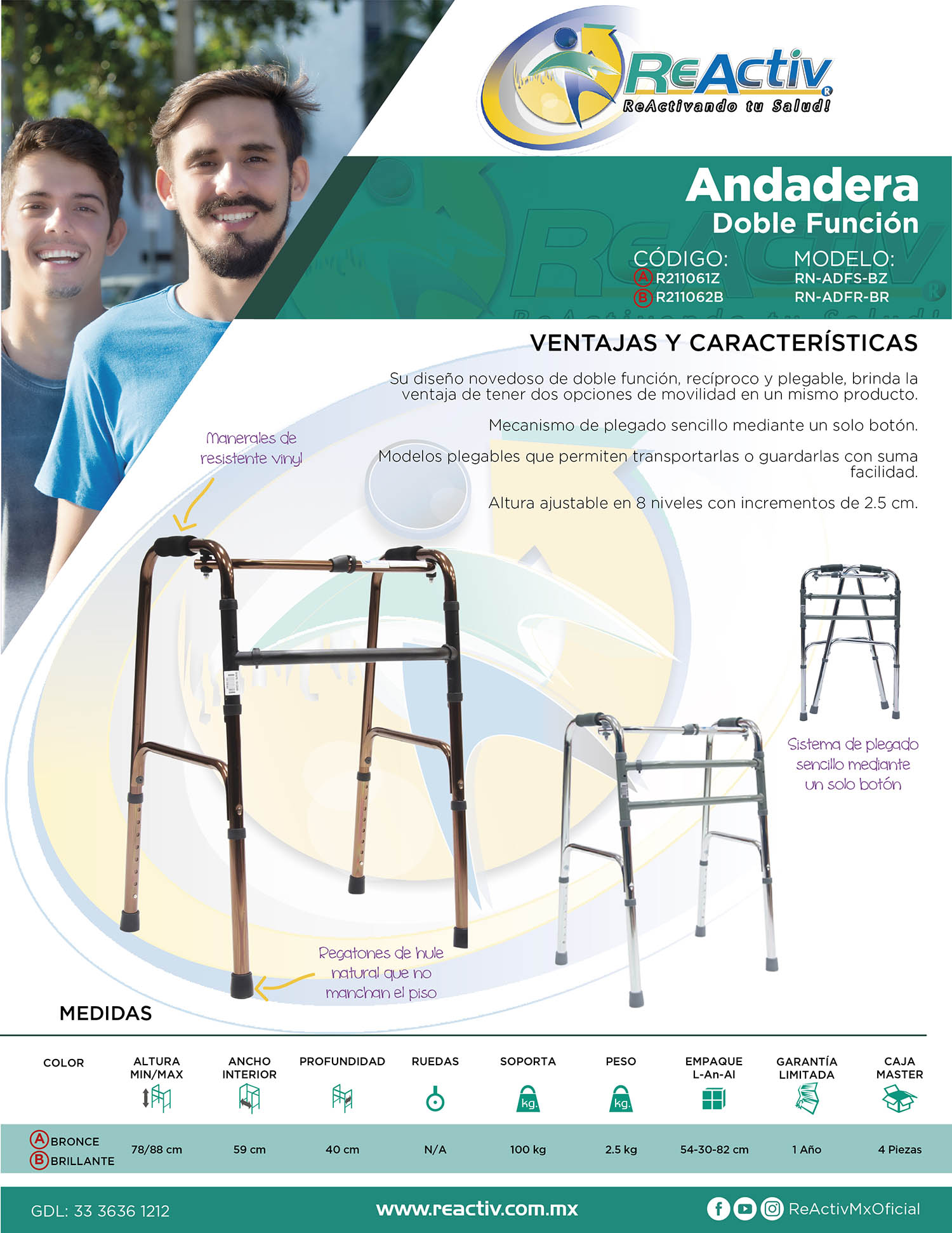 Andadera Doble Función de Aluminio con Soporte Frontal Sencillo - Color Bronce