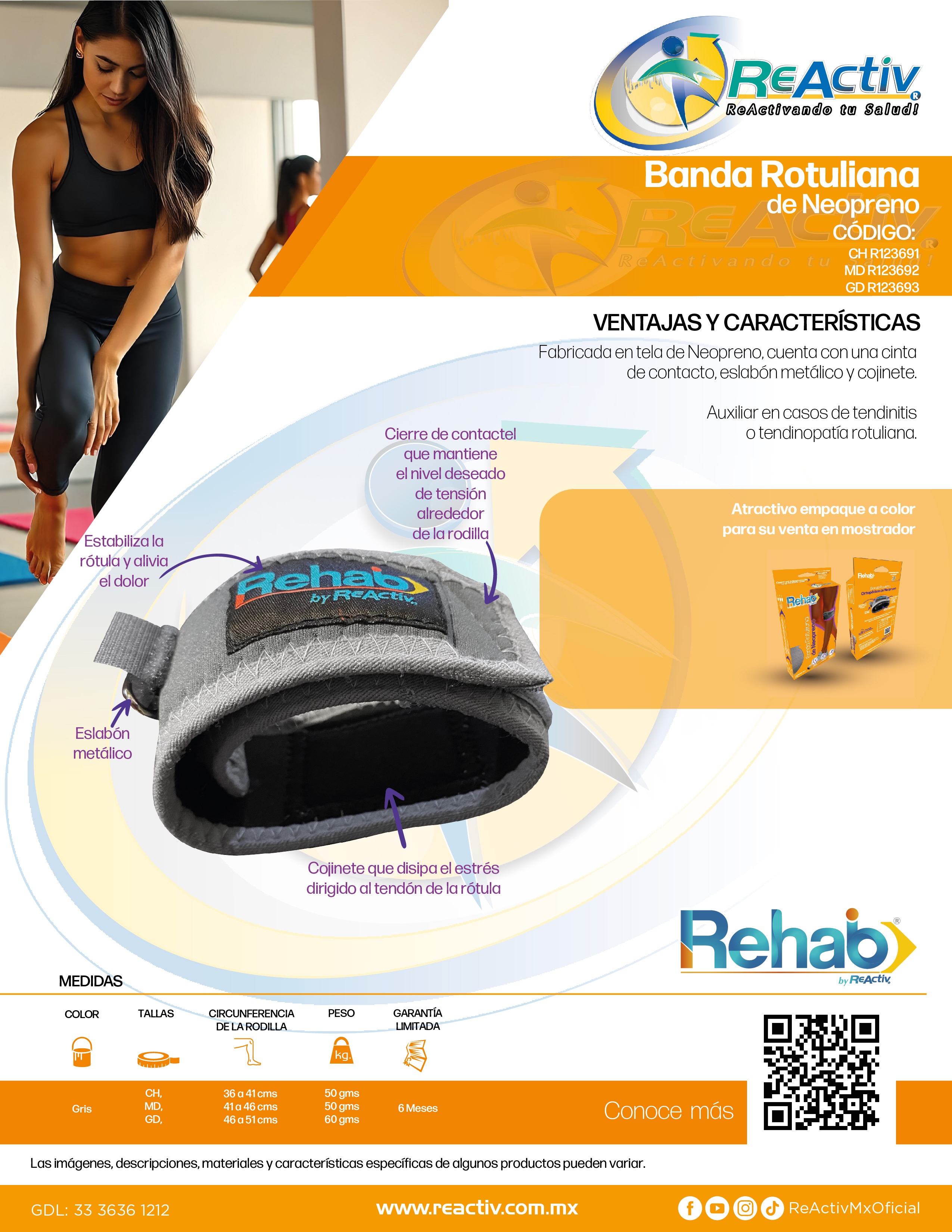 Banda Rotuliana Ortopédica de Neopreno Rehab, Ch