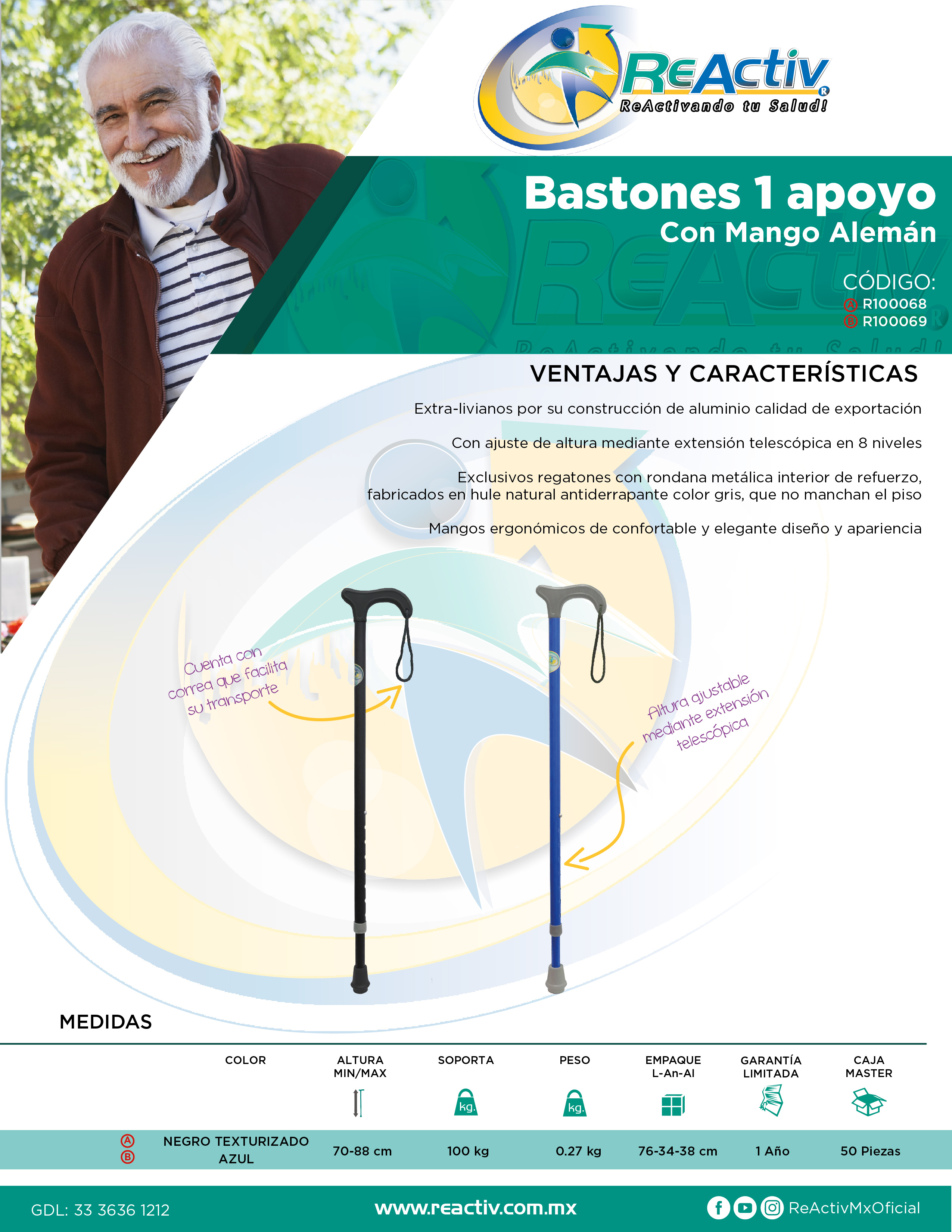 • Ligero para un manejo sin esfuerzo, permite caminar con mayor facilidad y comodidad.