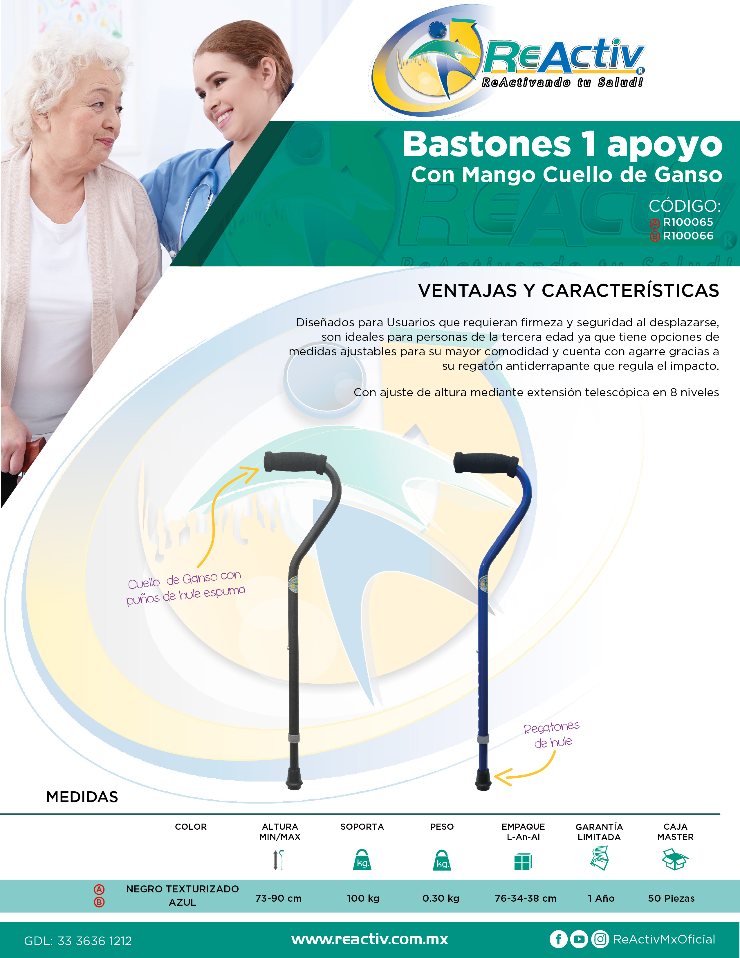 Bastón de Aluminio Esmaltado Mango Cuello de Ganso Color Azul Brillante