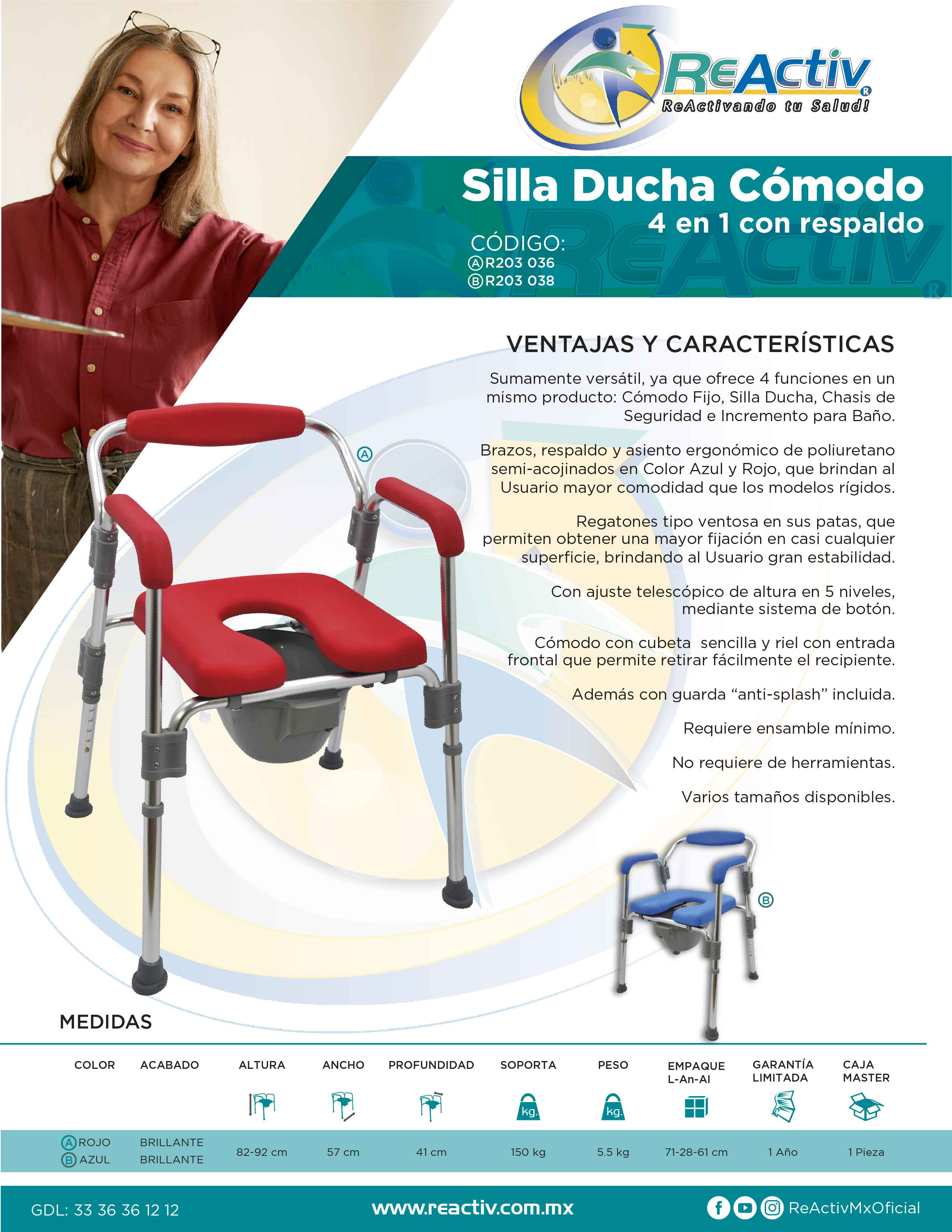 Cómodo para Ducha 4 en 1 Plegable con Respaldo - Rojo