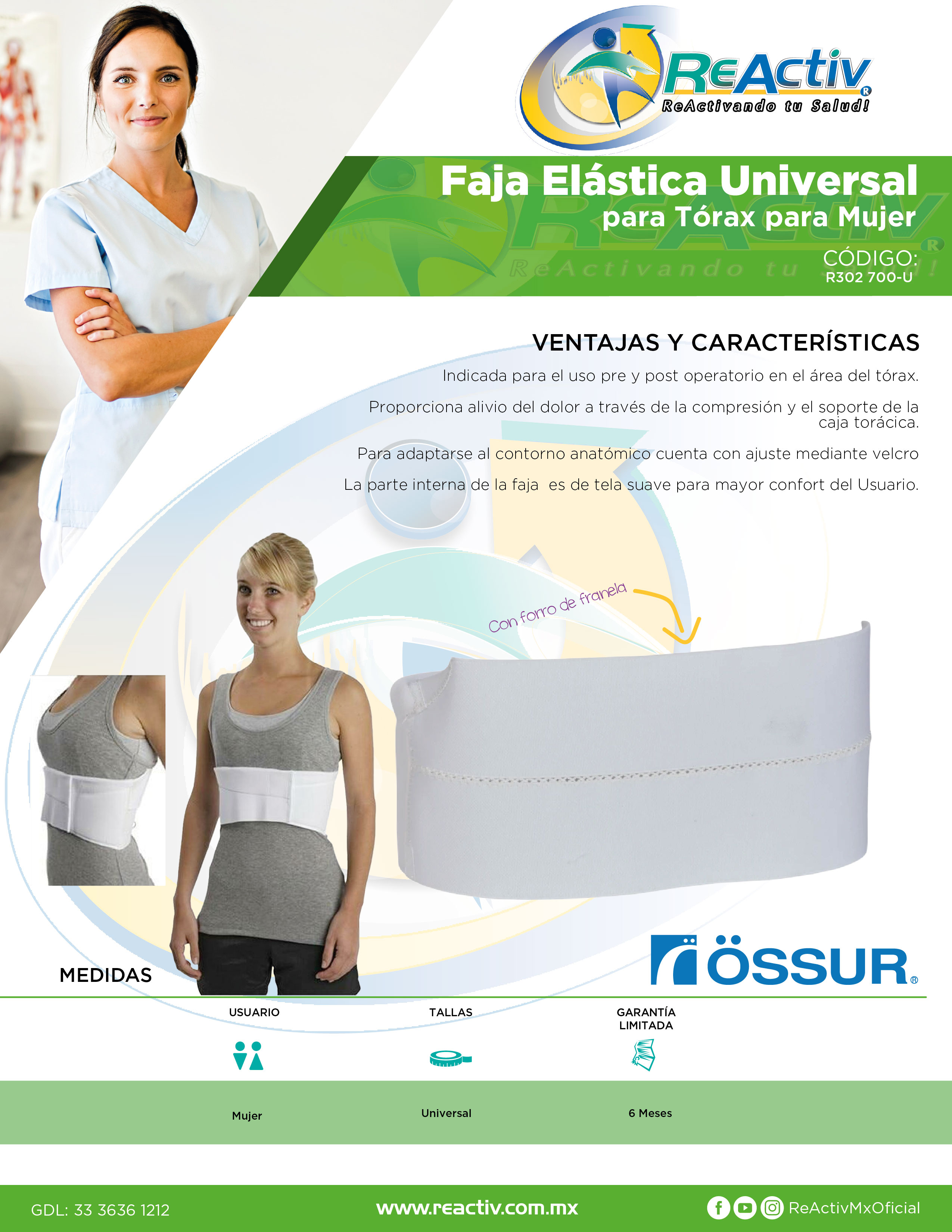 Faja Elástica Universal OSSUR para Tórax Pre y Post-Operatoria Dama