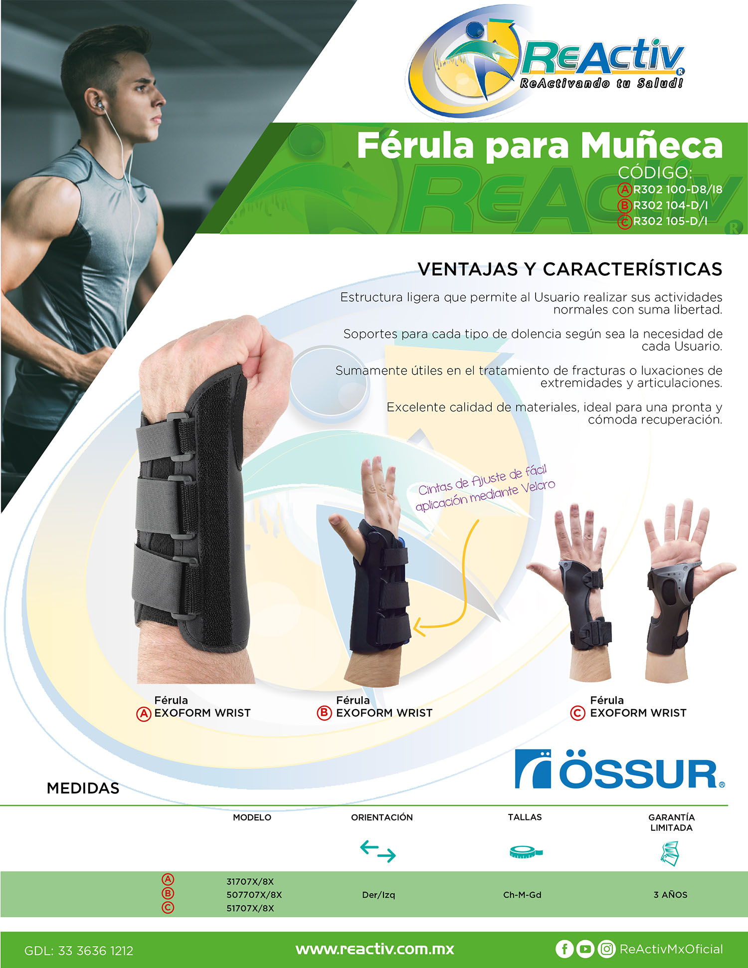Férula para Muñeca Ossur-ExoForm Wrist, Contorneada Ergonómicamente, Izquierda de 8", CH