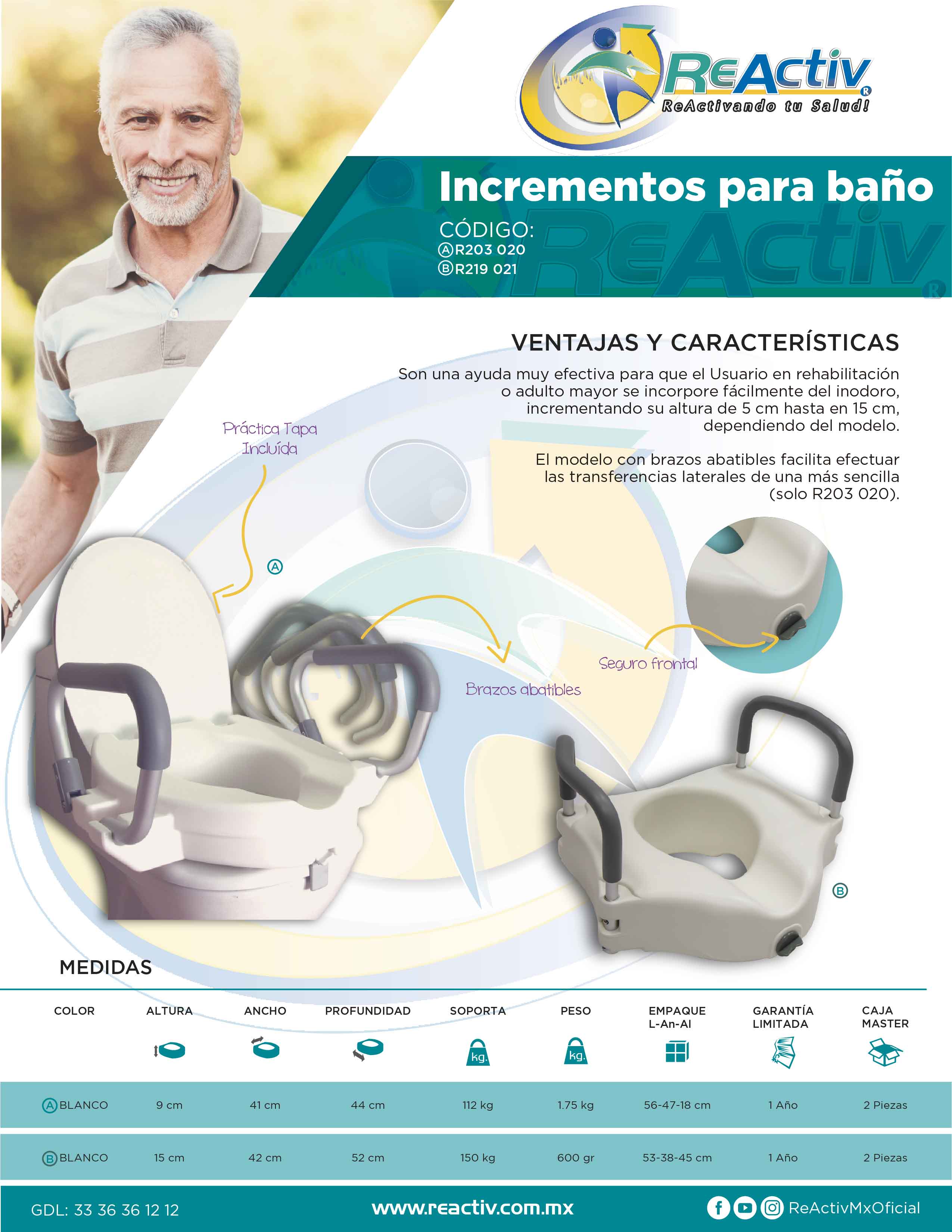 Incremento para Baño de Lujo con Brazos Fijos - Blanco