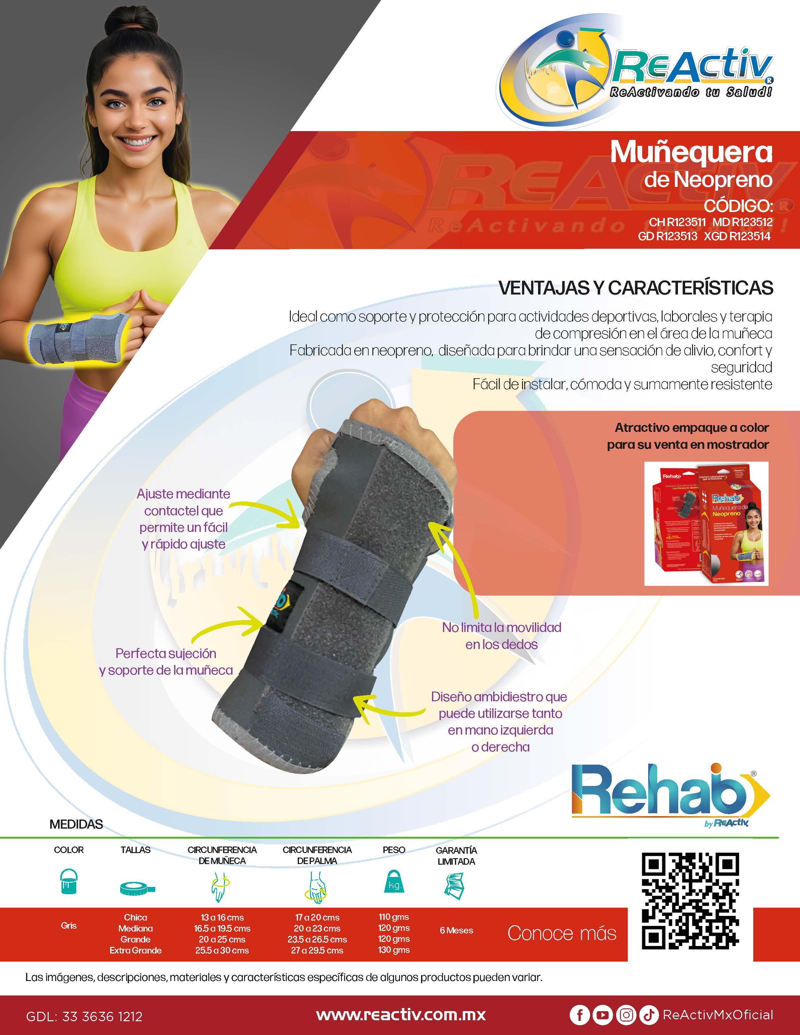Muñequera Estabilizadora de Neopreno con Férula de Aluminio Ambidiestra para Síndrome de Túnel Carpiano Rehab, Ch