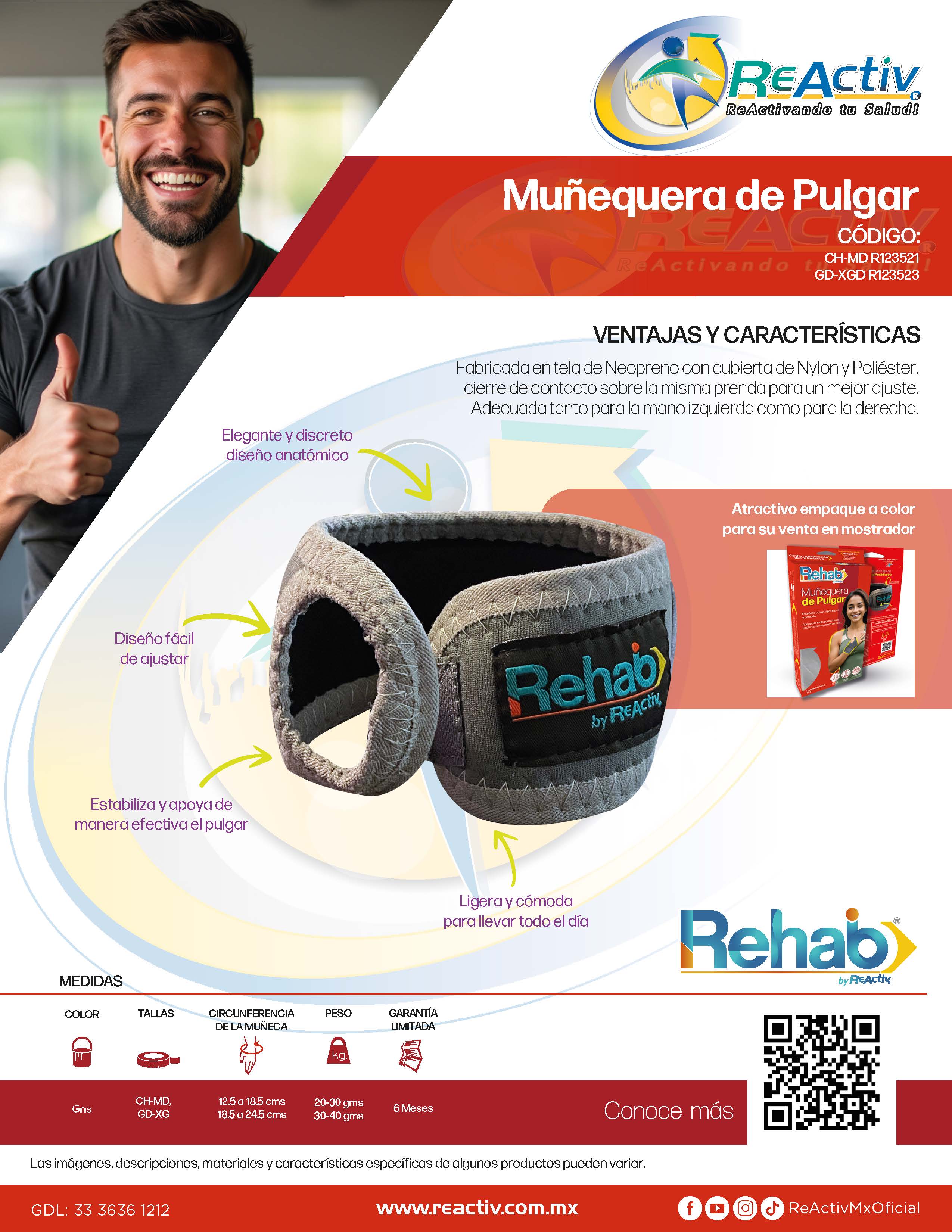 Muñequera de Pulgar de Neopreno Ambidiestra Rehab, Ch-Md