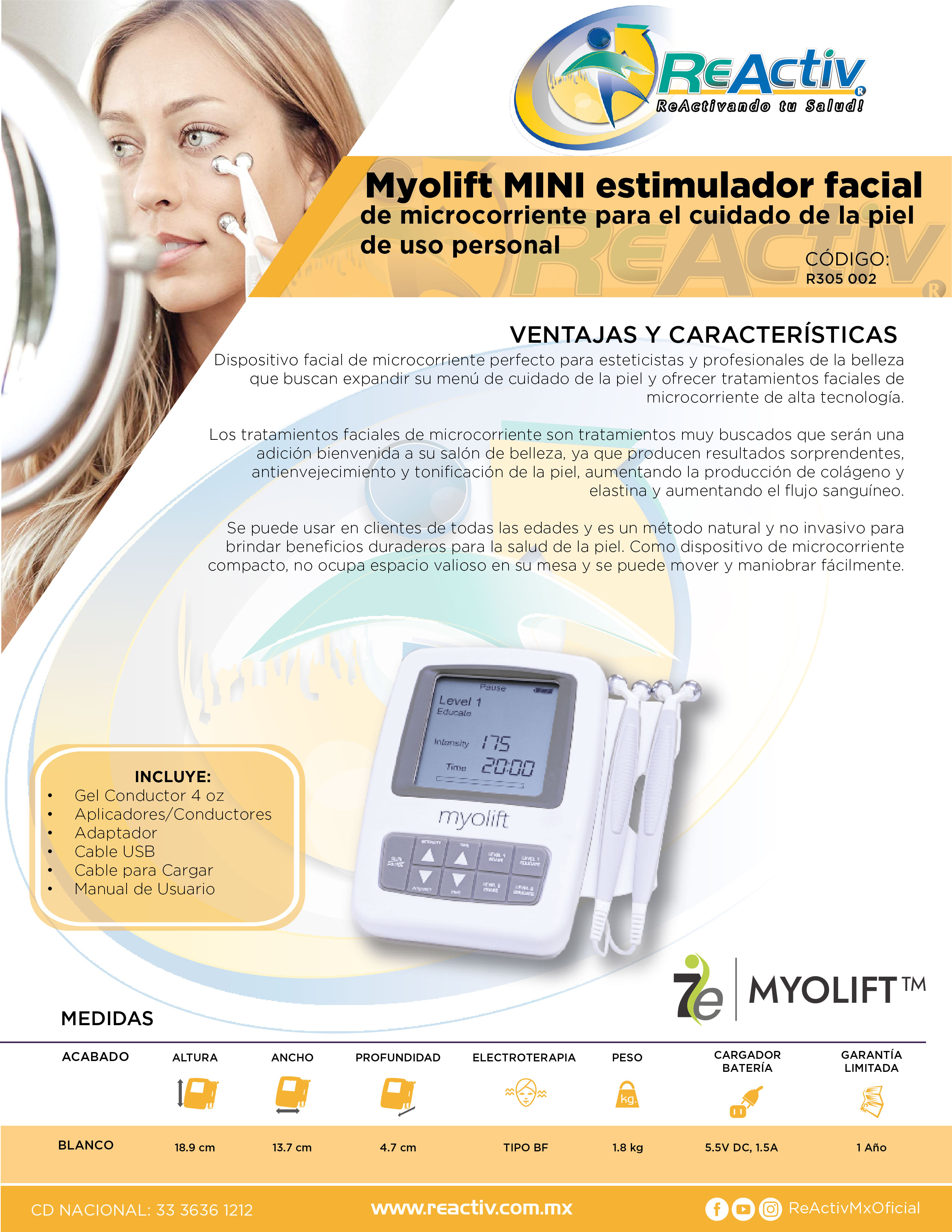Myolift Mini Estimulador Facial de Microcorriente para el Cuidado de la Piel de Uso Profesional/Personal