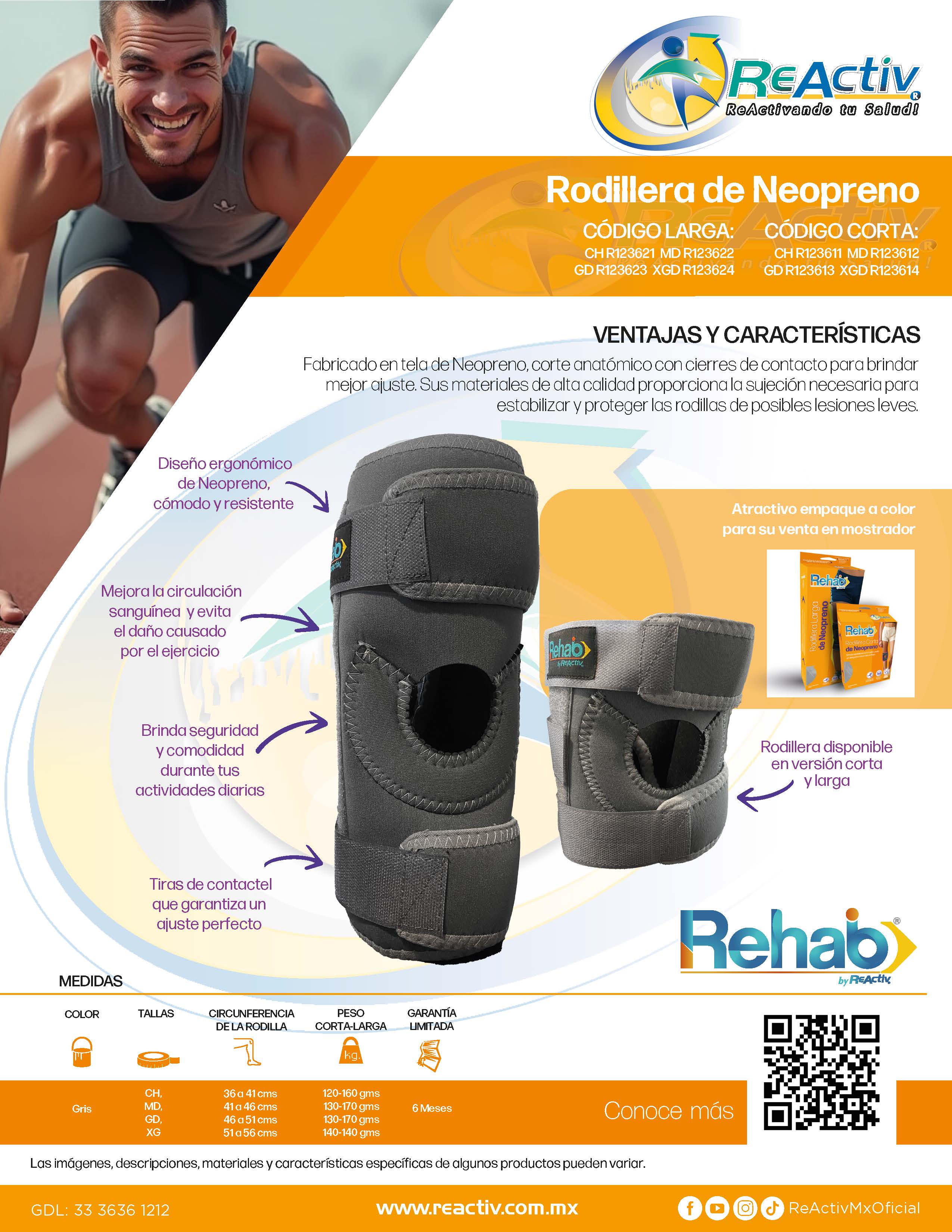 Rodillera Larga de Neopreno con Broche de Contactel Rehab, Ch