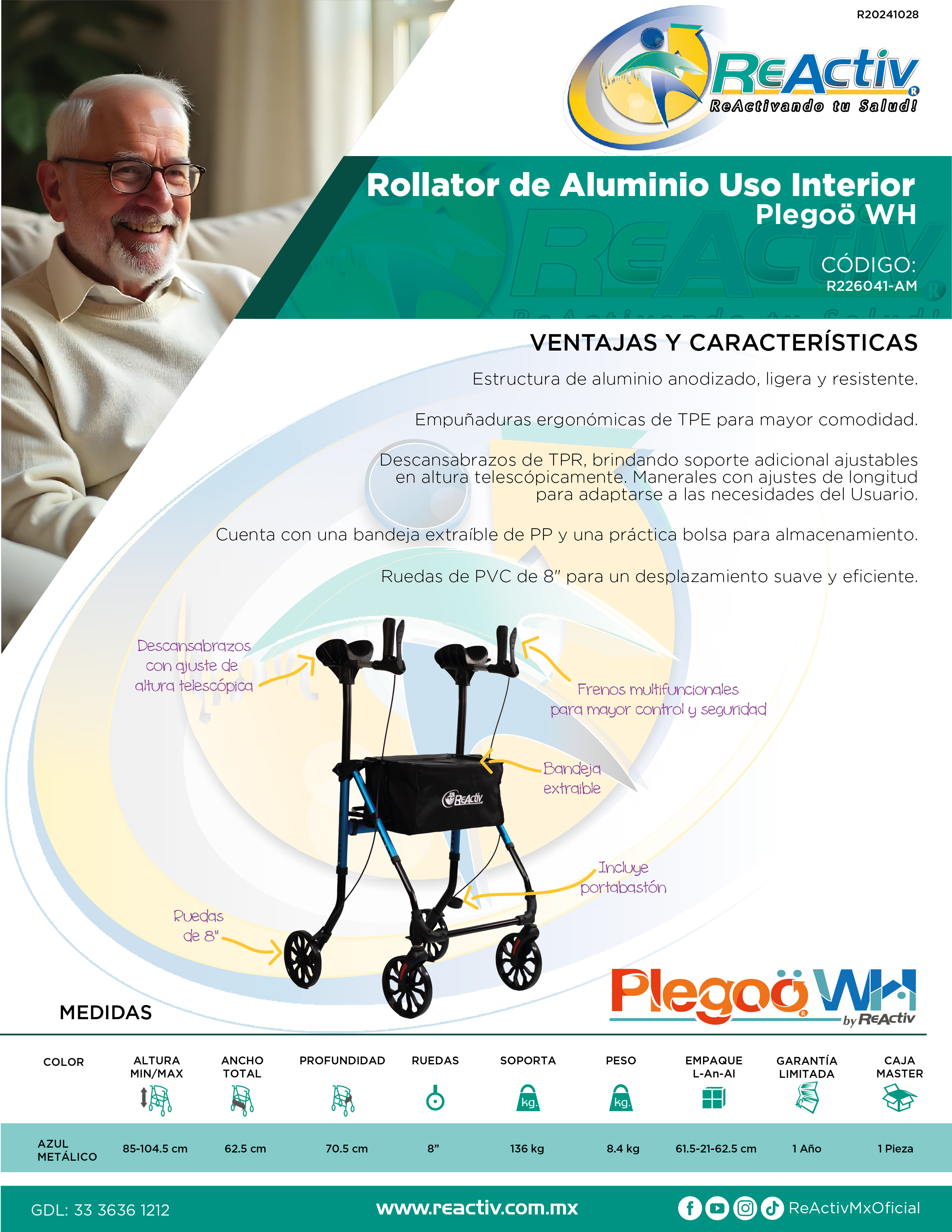 Rollator de Aluminio para Uso Interior, Color Azul Metálico