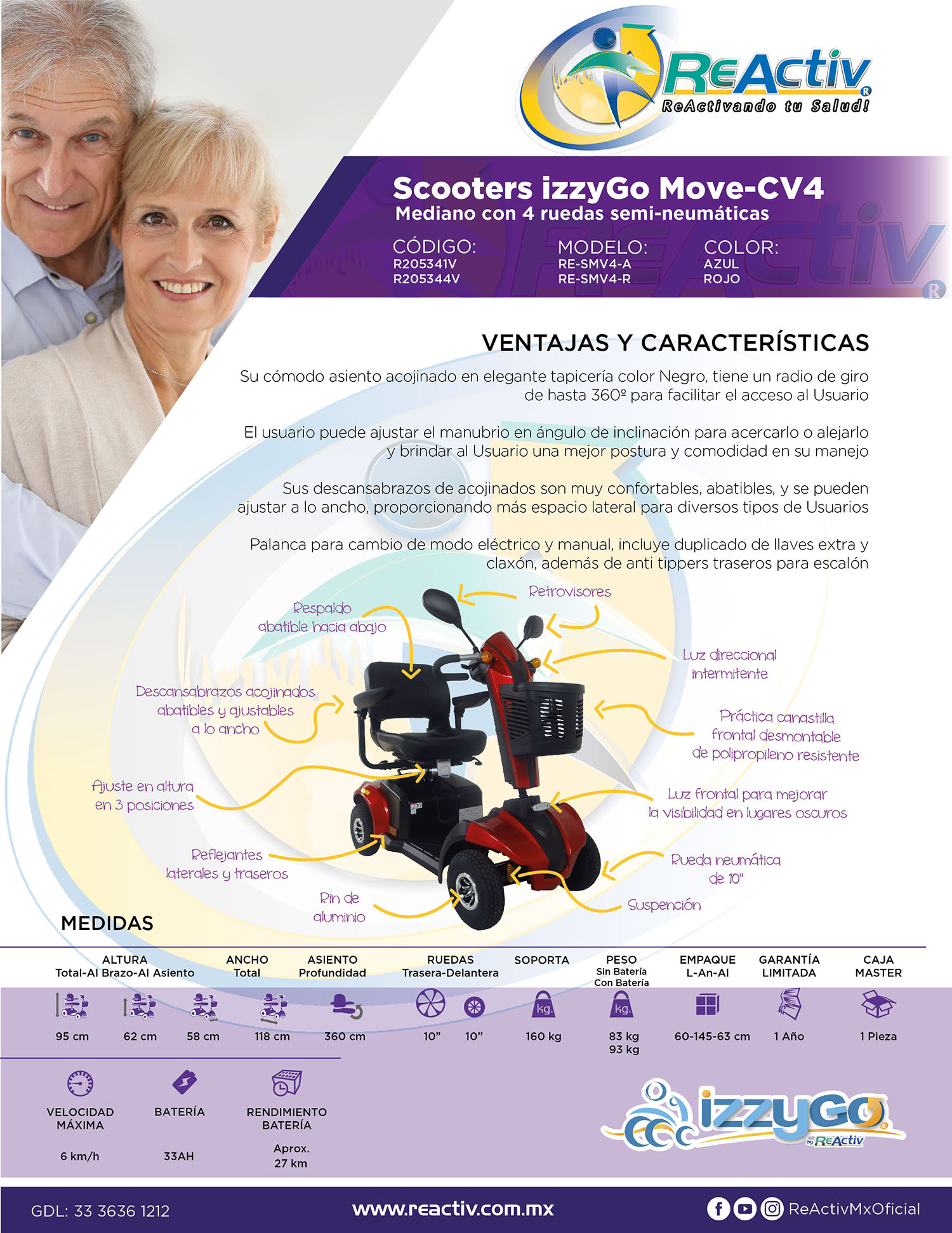 Scooter MD con 4 Ruedas Semi-Neumáticas - Azul