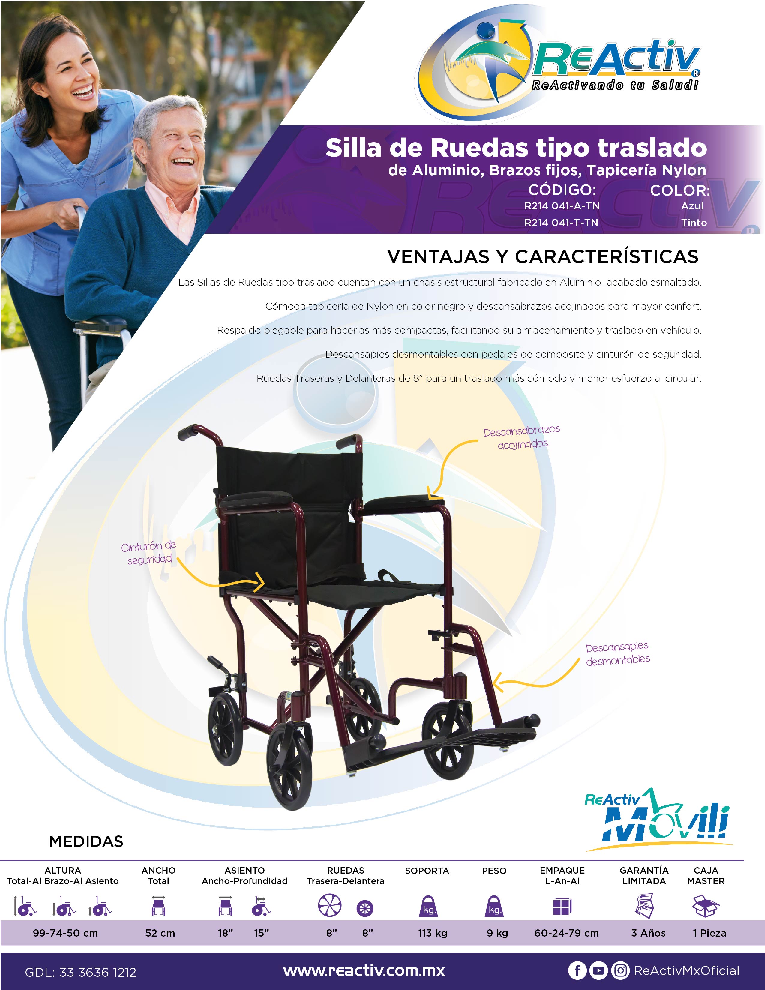 Silla de Ruedas de Aluminio Tipo Traslado, Tapicería Nylon, Azul