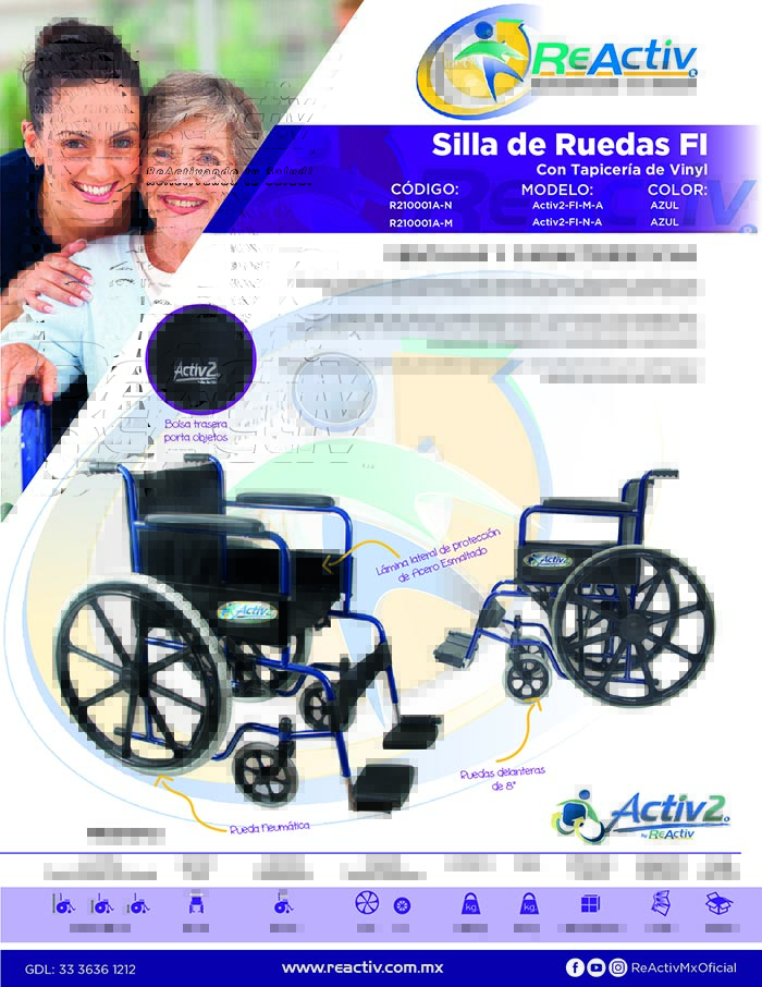 Silla de Ruedas Económica, Brazos y Descansapies Fijos, Rueda Mag, Tapicería Vinyl