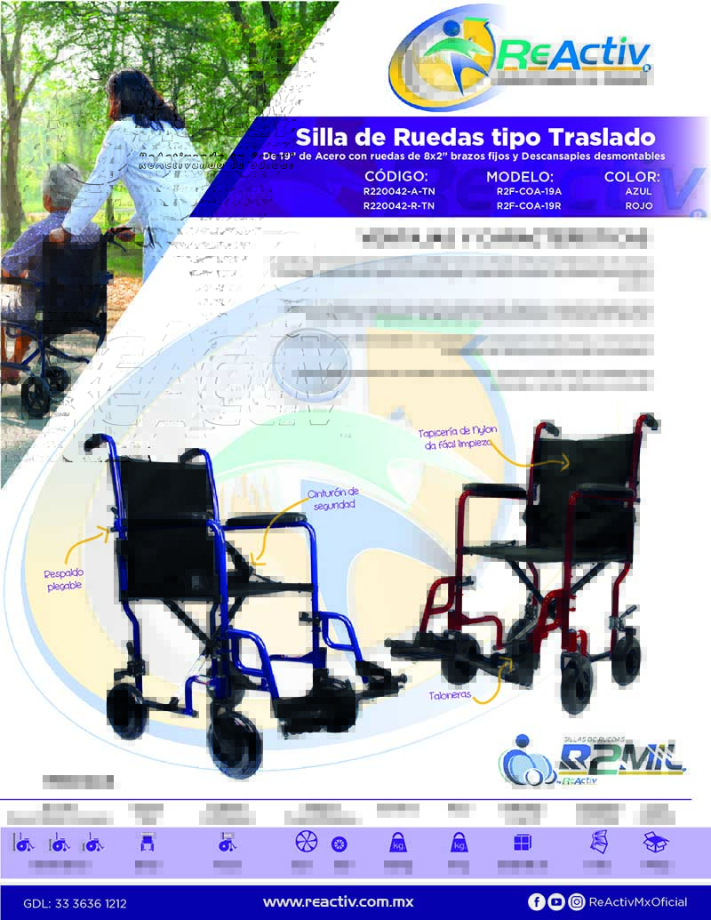 Silla de Ruedas R2MIL Forte de Traslado de Acero con Freno de Acompañante y Descansapies Desmontable - Color Azul